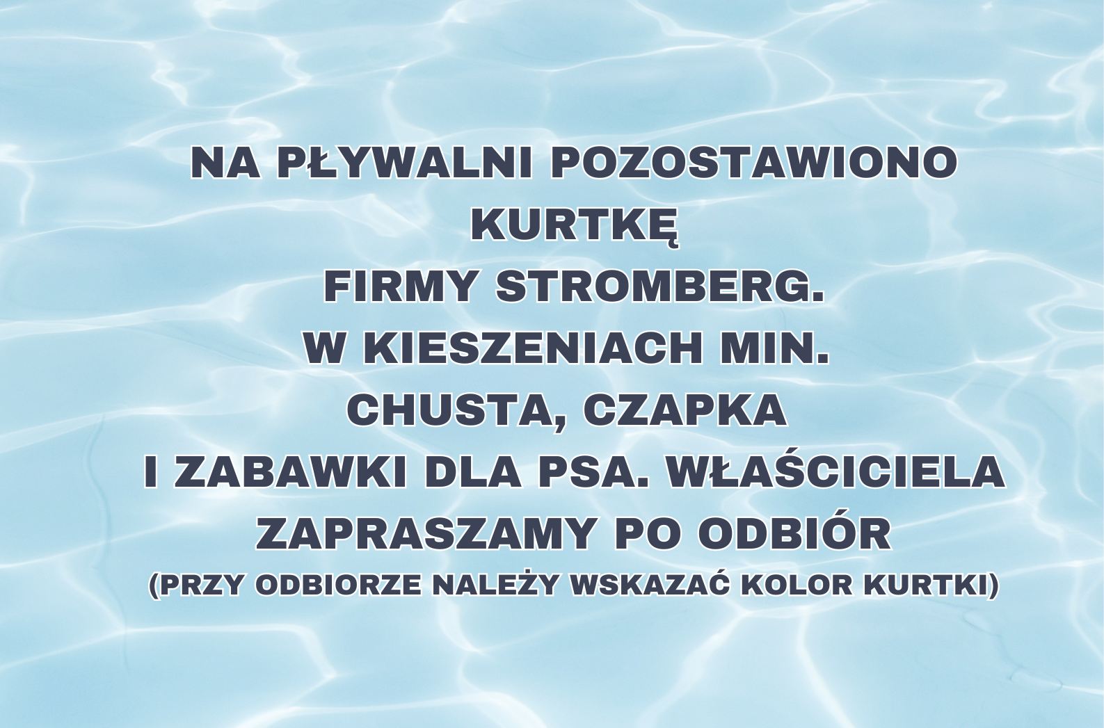 Na pływalni pozostawiono kurtkę firmy STROMBERG. W kieszeniach min. chusta, czapka i zabawki...